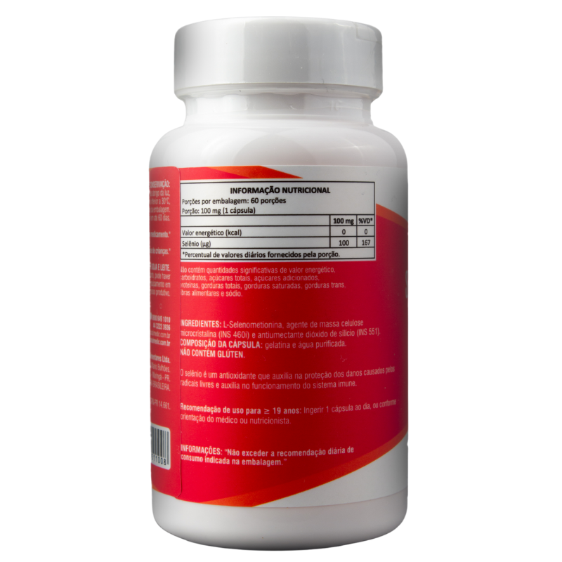 INGREDIENTES: L-selenometionina, agente de massa celulose microcristalina (INS 460i) e antiumectante dióxido de silício (INS 551).